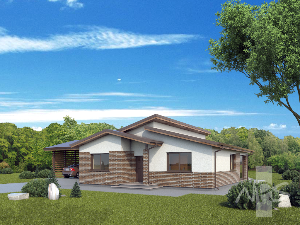 Ekonomiškas, vienšlaičiu – dvišlaičiu stogu, vieno aukšto gyvenamasis namas - Goda - su stogine dviems automobiliams (už jos numatyta malkinė) bei trimis kambariais, kuriuose galės įsikurti 3 - 4 asmenų šeima. Prie namo numatyta dalinai dengta terasa 18 m2, kurios galima ir atsisakyti. Stogo, sienų, namo apdailos statybinės medžiagos parenkamos kiekvienam užsakovui individualiai. Galimi įvairūs pakeitimai, turime ir kitų šio projekto išplanavimo variantų. Gyvenamojo namo statyba yra nesudėtinga ir nebrangi, dėl parinktų paprastų konstrukcijų ir sprendinių o taip pat mažo bendro ploto – 112,09 m2.